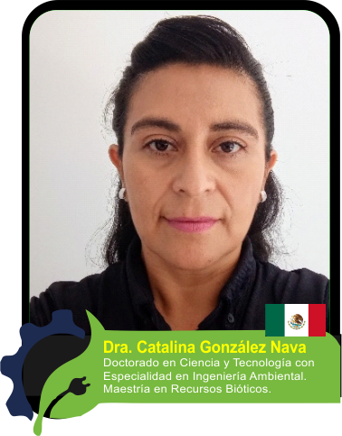 La Dra. Catalina González Nava es Profesora Titular en la Universidad Politécnica de Guanajuato, donde también apoya la Dirección de la carrera de Ingeniería en Energía y Desarrollo Sostenible. Es Doctora en Ciencia y Tecnología con especialidad en Ingeniería Ambiental, Maestra en Recursos Bióticos e Ingeniera Bioquímica por el Instituto Tecnológico de Celaya.