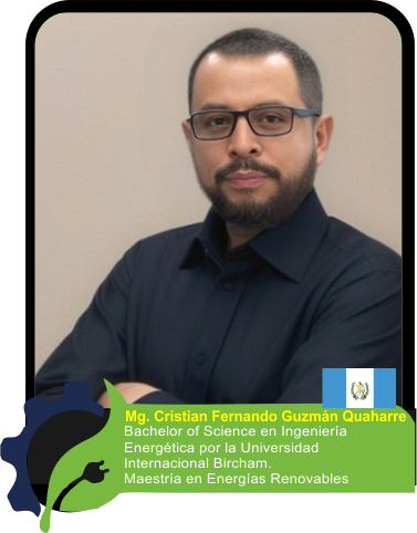 El M.Sc. Cristian Fernando Guzmán Quaharre es docente e investigador de la Facultad de Ingeniería de la Universidad Galileo (Guatemala), donde ha desarrollado una trayectoria de más de 18 años de experiencia académica en el área de energías renovables, física y sistemas energéticos sostenibles.