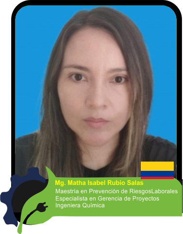 Martha Isabel Rubio Salas, Ingeniera Química de la Universidad Industrial de Santander (UIS), Magíster en Prevención de Riesgos Laborales de la Universidad Internacional de Valencia (España) y Especialista en Gerencia de Proyectos de la Universidad Minuto de Dios, con experiencia en entornos educativos e industriales. Cuenta con más de 12 años de trayectoria en docencia universitaria, 15 años en investigación científica y 10 años de experiencia en proyectos industriales.